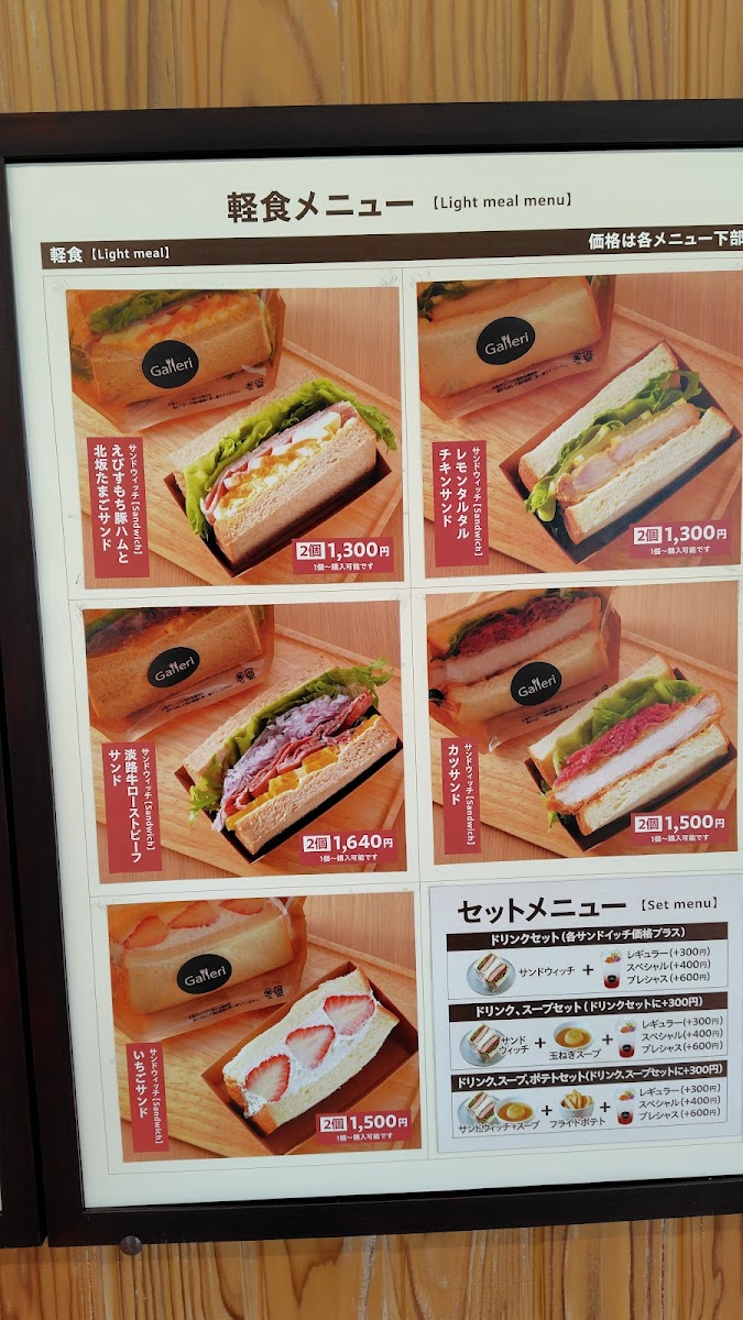 花さじきカフェレストラン「Galleri(ギャラリ)」 Menu